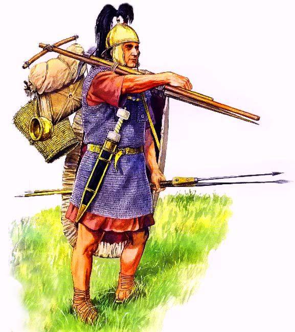 Pe lângă echipamentul obişnuit, soldaţii romanii cărau în lungile marşuri inclusiv echipamentul necesar unei tabere de noapte. Astfel, ei puteau, în orice condiţii, să creeze o mică fortificaţie în teritoriul inamic, din materialele pe care le cărau cu ei. Efectul psihologic era devastator.